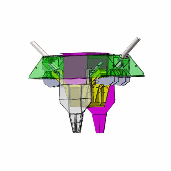 Selama seluruh proses pembukaan dan penutupan pengumpan rel geser ganda hidraulik, bagian bawah pelat pengatur aliran selalu dapat bergerak mendekati permukaan rol. Selain menyesuaikan ketebalan kolom material secara akurat dan secara efektif membatasi material agar tidak membentuk rongga ekstrusi tertutup, pengumpan ini juga dapat membuat tekanan material di silo selalu bekerja di antara kedua rol, yang lebih mendukung kerja efektif mesin pres rol.