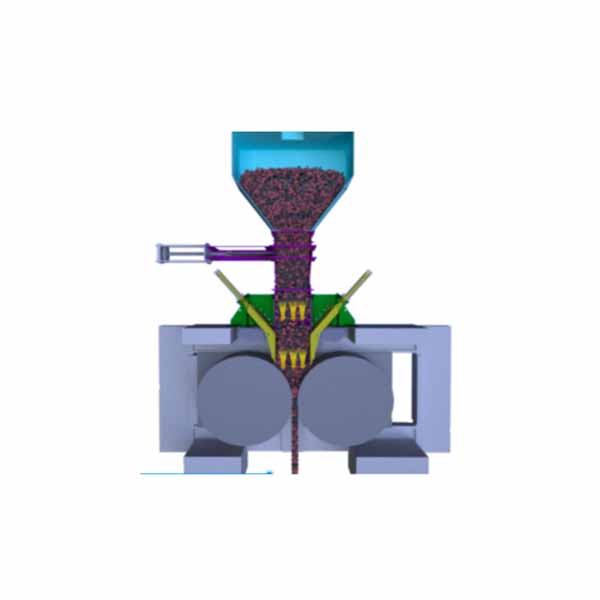2. Pelat pengatur aliran, penyekat sisi rol, dan penyekat samping selalu membentuk rongga yang pada dasarnya tertutup, dan material berada dalam keadaan yang sepenuhnya dibatasi. Kolom material yang stabil dapat dibentuk di antara kedua rol, sehingga material yang diumpankan di antara kedua rol selalu dalam kondisi pengumpanan yang terlalu jenuh.